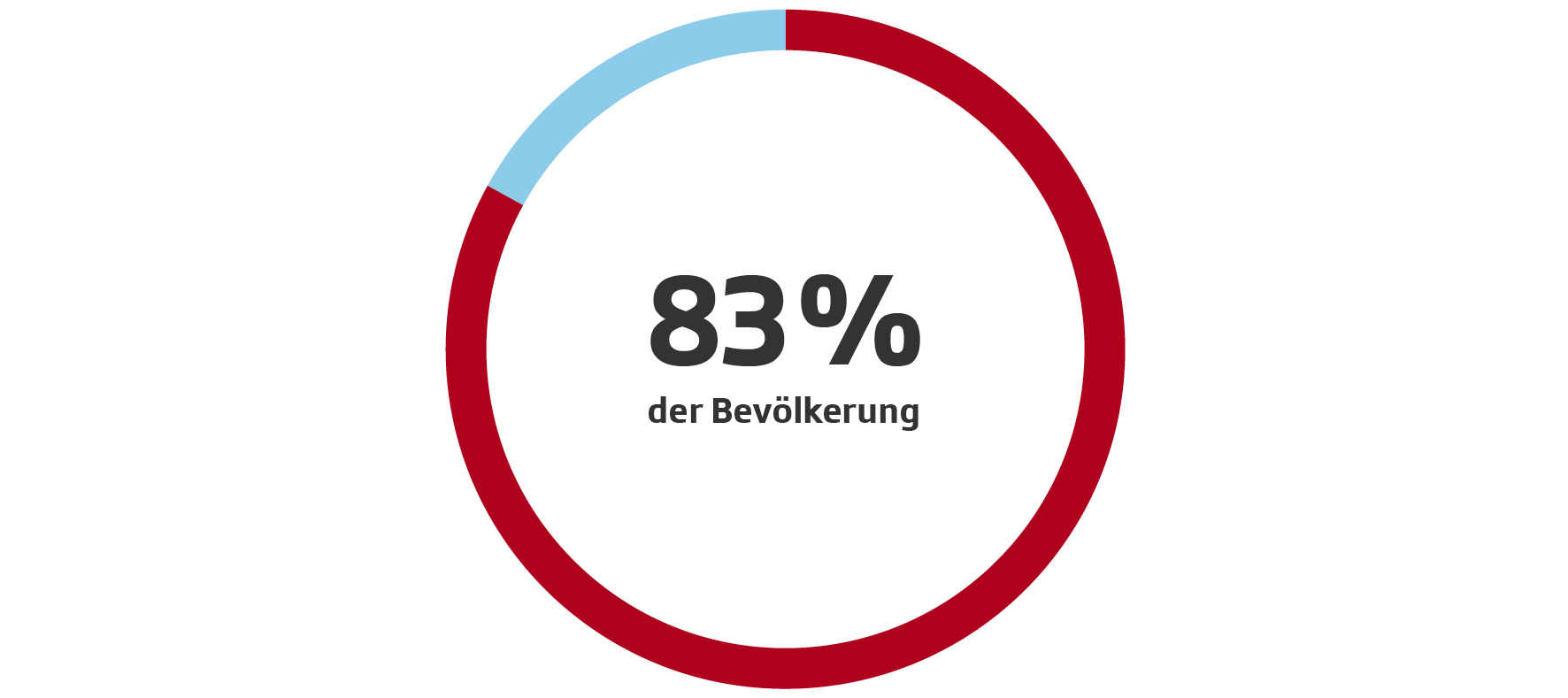 83 Prozent der webaktiven Bevölkerung ab 15 Jahren in der Schweiz nutzen mindestens einmal pro Woche ein Angebot der SRG im Fernsehen, im Radio, auf Websites, über Apps oder über Social-Media-Plattformen.