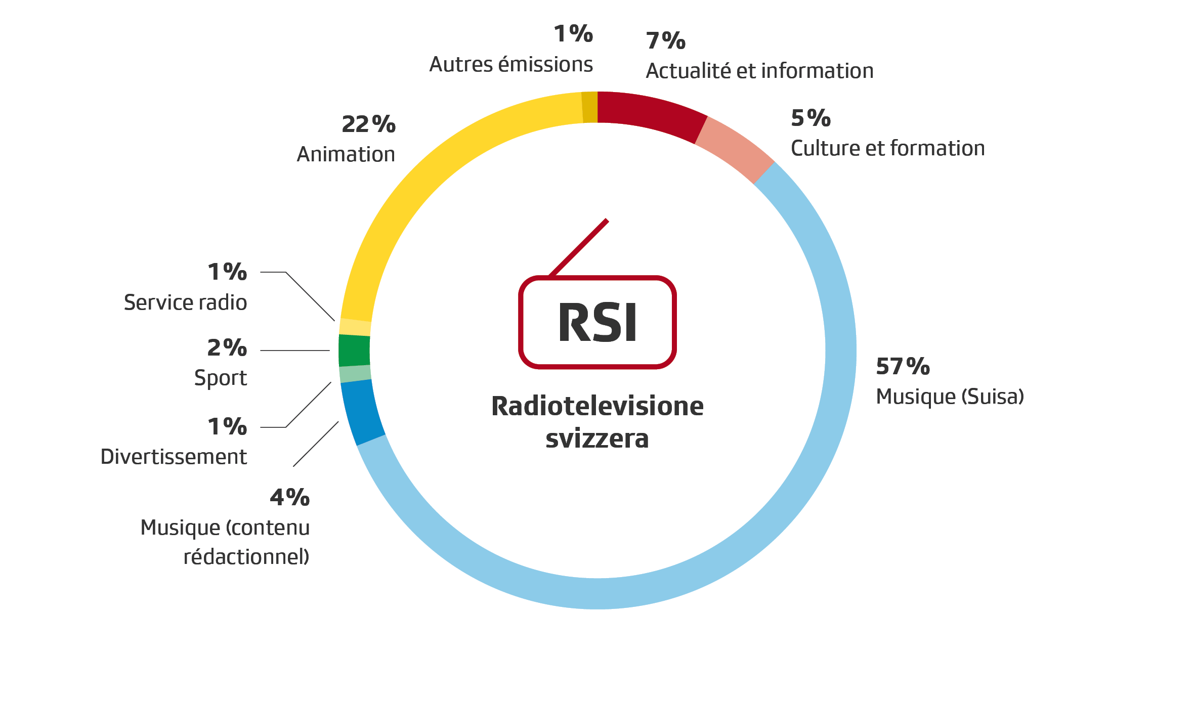Temps de programme par type de contenu (en heures) – Radio RSI