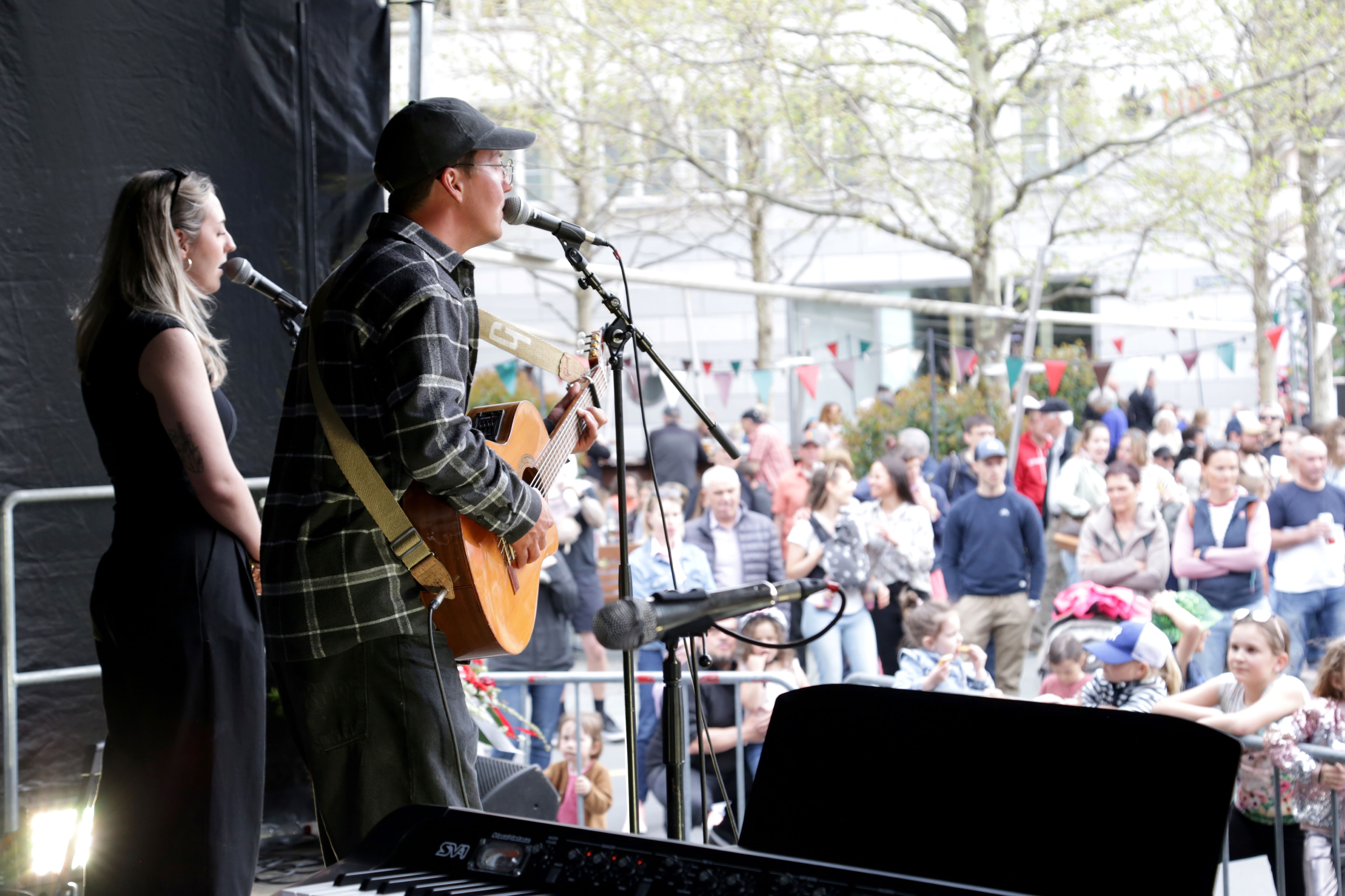 «SRG SSR On the Road to Basel»: Künstler Mattiu und seine Schwester Tiziana auf der Bühne in Chur (Bild: SRG.R / Momir Čavić)