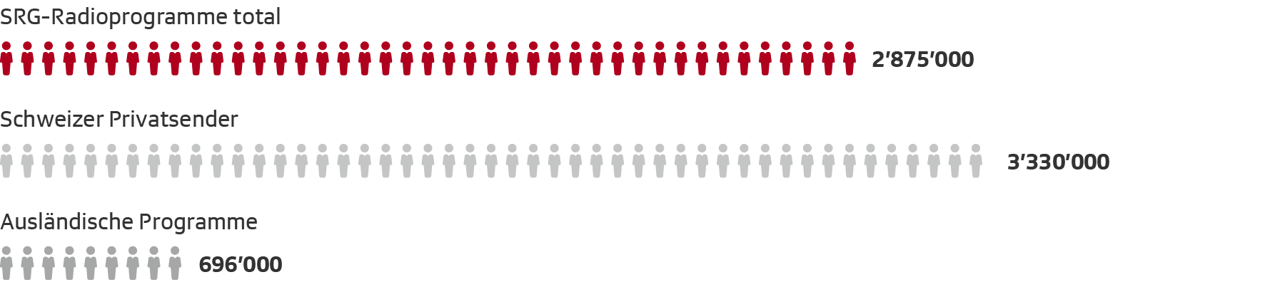 45 Prozent der Schweizer Bevölkerung hören wöchentlich Radio auf den Sendern der SRG.