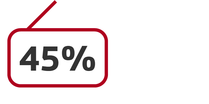 Radiowert 45 Prozent: Mediapulse Radio Data, Total Schweiz, Personen ab 15 Jahren, Mo–So, 24h, Wochenreichweite in Prozent (Kontaktdefinition: mind. 15 Min. konsekutive Nutzung in der Woche), 30.12.2024–28.12.2025. Universum Radio ab 15 Jahren: 7’442’694