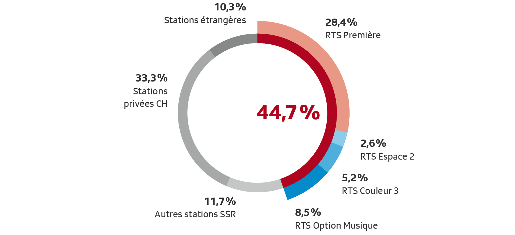 Source: Panel radio Mediapulse, EvoRep, Suisse romande, personnes de 15 ans et +, 1.1.–31.12.2024, lu–di, 24h, PN-m, radio en direct.