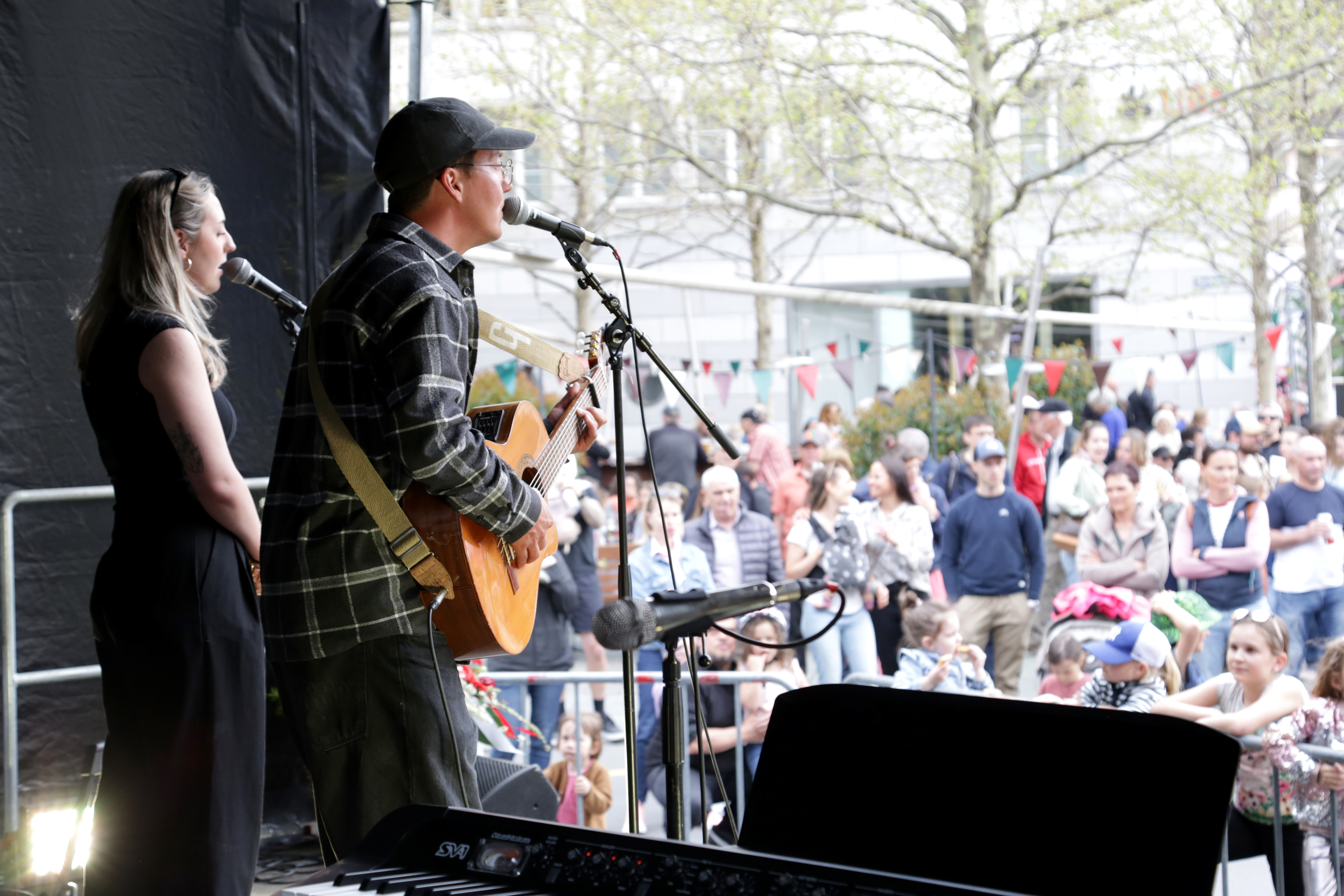 «SRG SSR On the Road to Basel»: l'artiste Mattiu et sa sœur Tiziana sur scène à Coire (image: SRG.R/Momir Čavić)