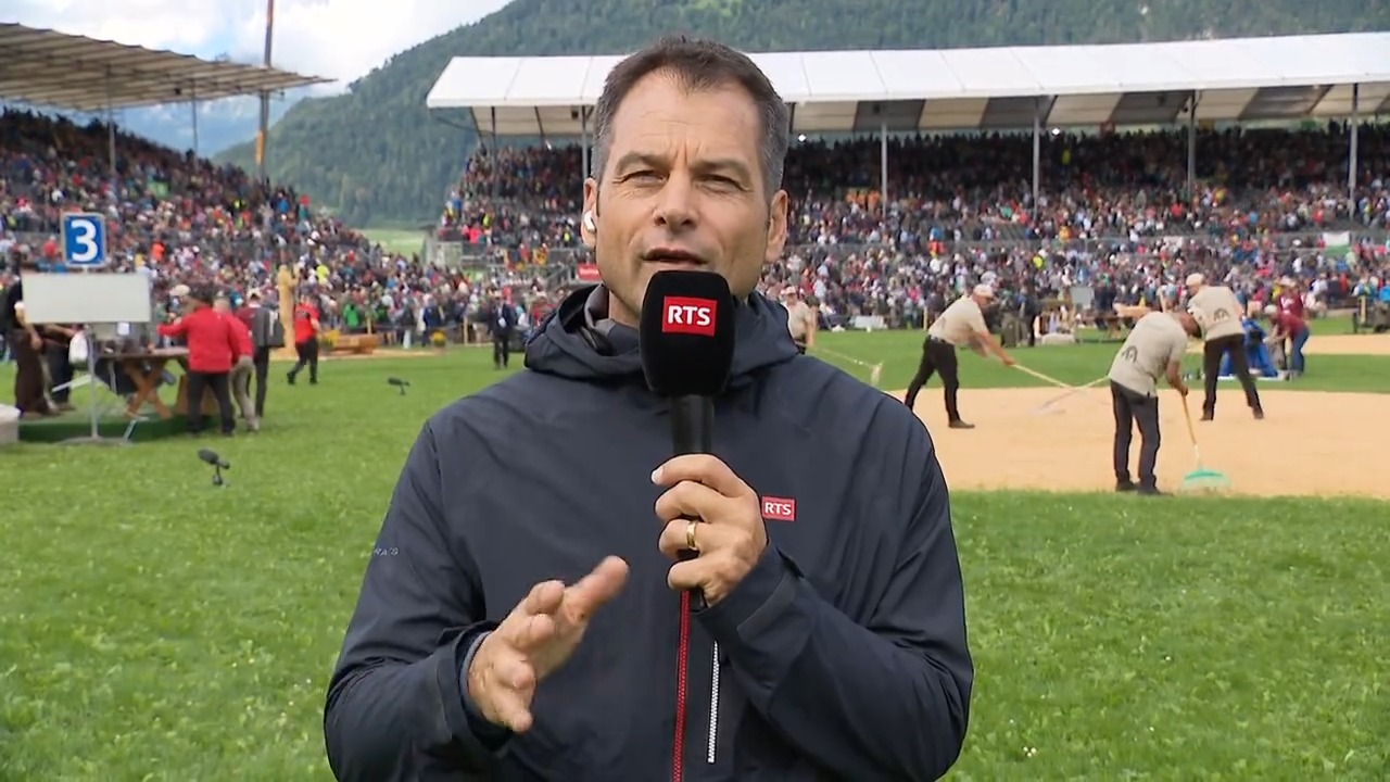 Olivier Dominik, journaliste RTS Sport, en mission à la FFLS en août 2025 (image: RTS/capture d'écran)