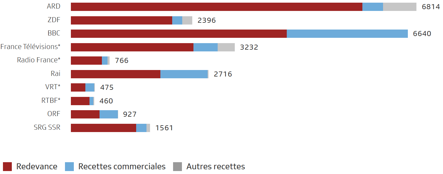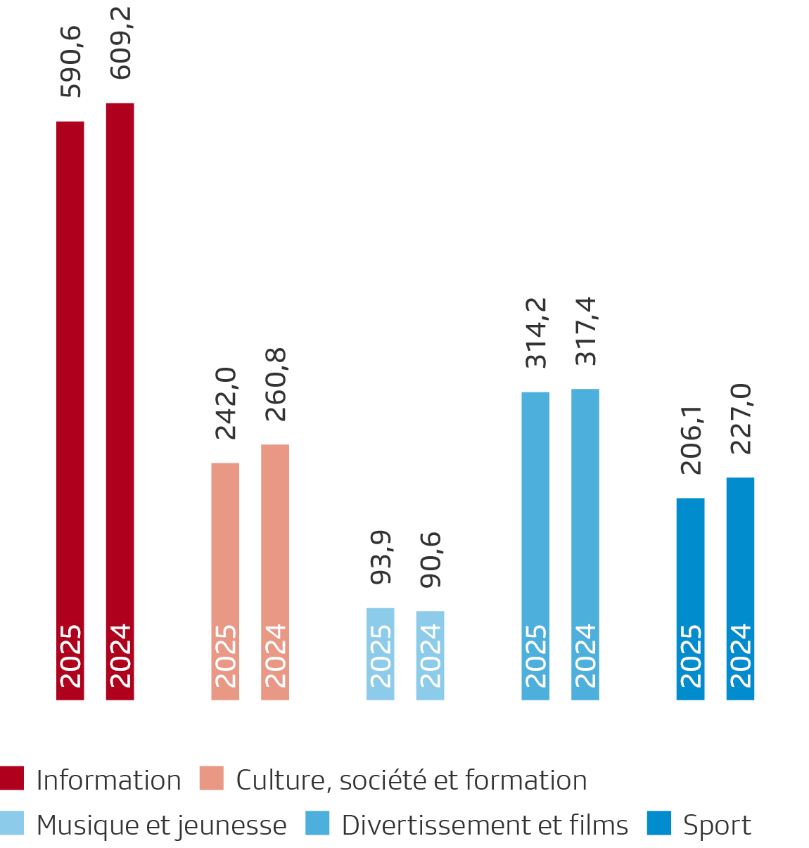 Source: chiffres 2024 de l'European Broadcasting Union; cours de conversion de €/CHF 0,95 (année précédente: 0,97); chiffres 2025 pas encore disponibles